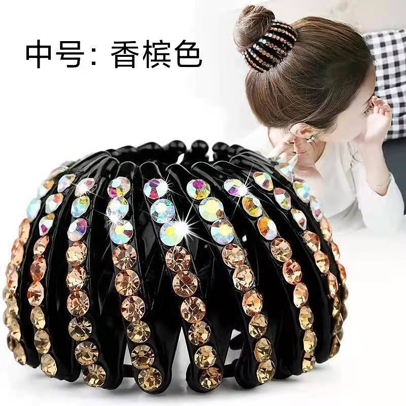 1pc Rhinestone Nest Shape Hair Clip Elegant Bun Maker Ponytail Hold...