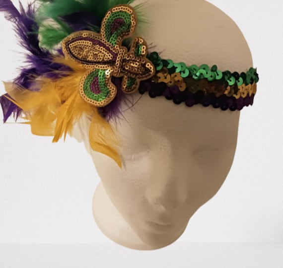 FREE SHIPPING 1 business day Our beautiful Mardi Gras feather headband is so unique and ready to acc...