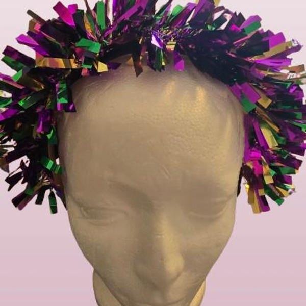 FAST SHIPPING 1 BUSINESS DAY Mardi Gras Tinsel headband comes on a wide headband. Light weight and f...