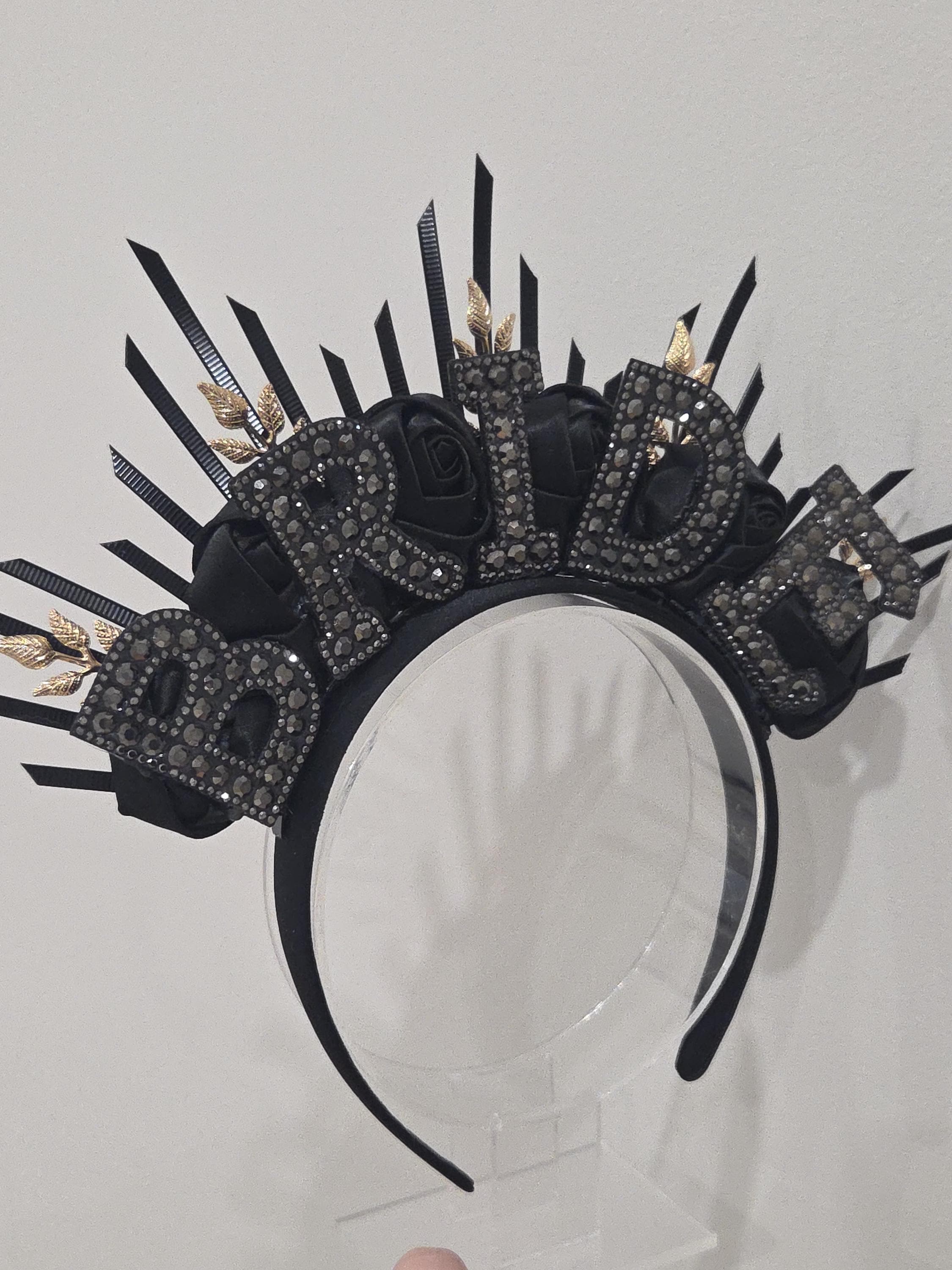 Stunning handmade black bride halo style headband. Finished with black bride lettering and artificia...