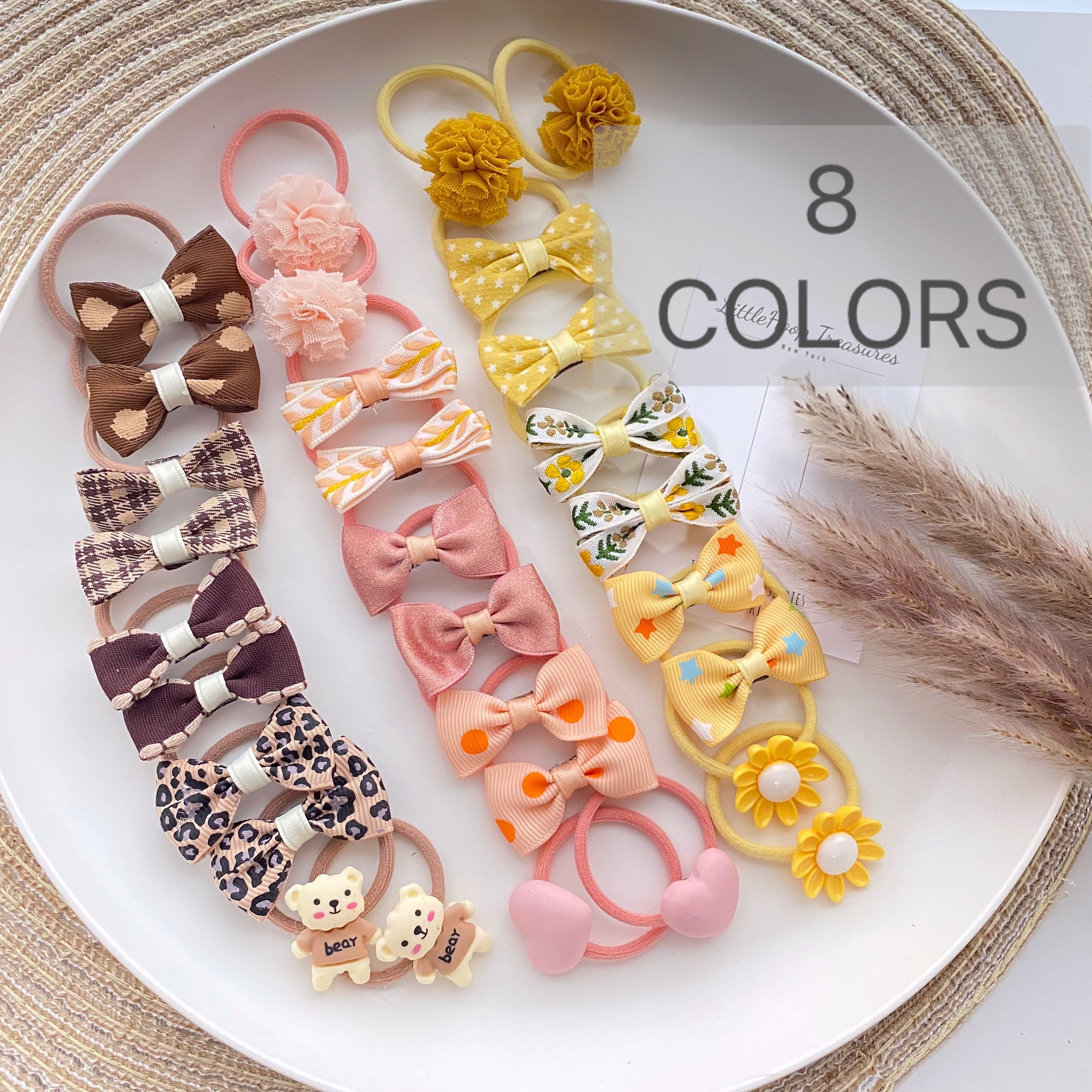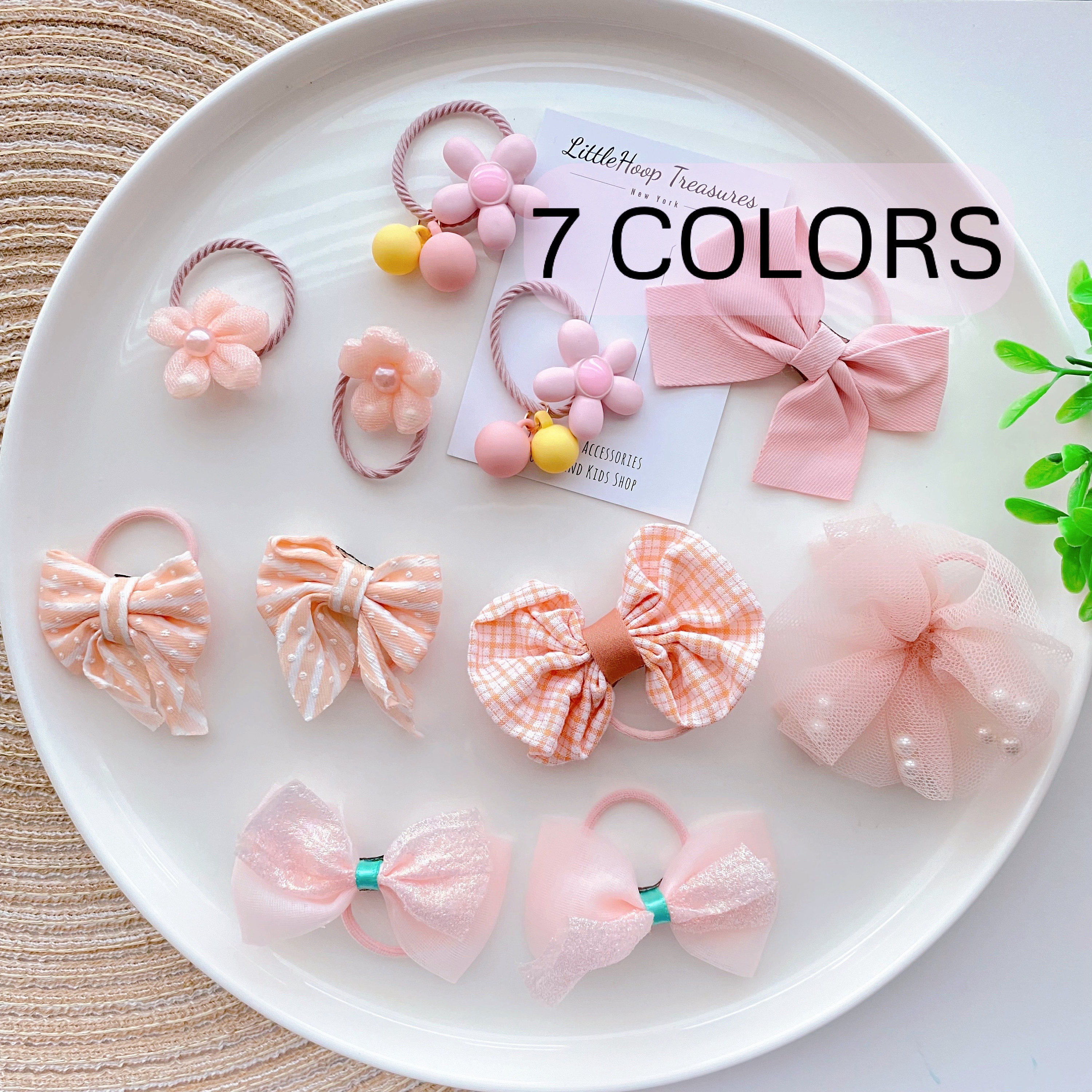 Available in 7 different sets This bows hair ties set is perfect for toddler or baby girl, little gi...