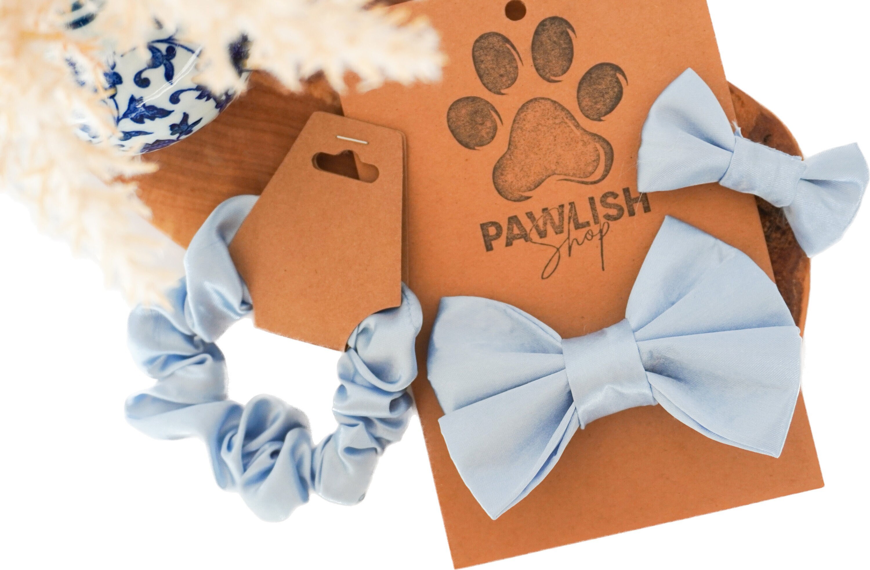 "Matching Silk Blue Scrunchie and Bow Tie for Dogs, Cats, Pets! You and your furry BFF are alwa...
