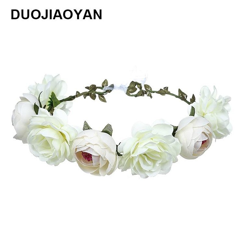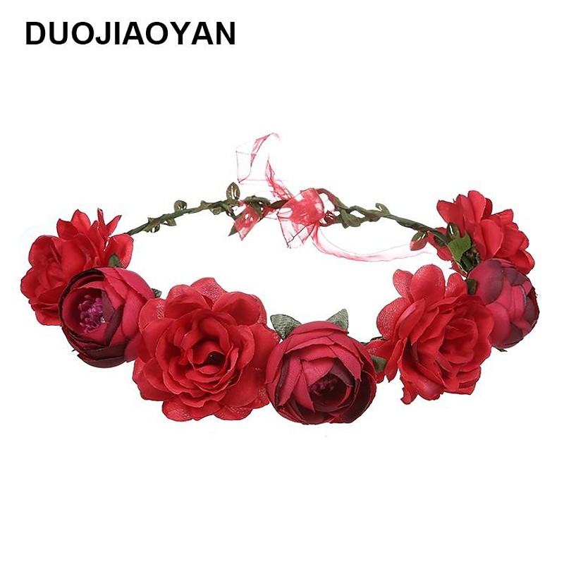 Flower Headband Rose Floral Boho Wreath Garland Hair Hoop Bohemian ...