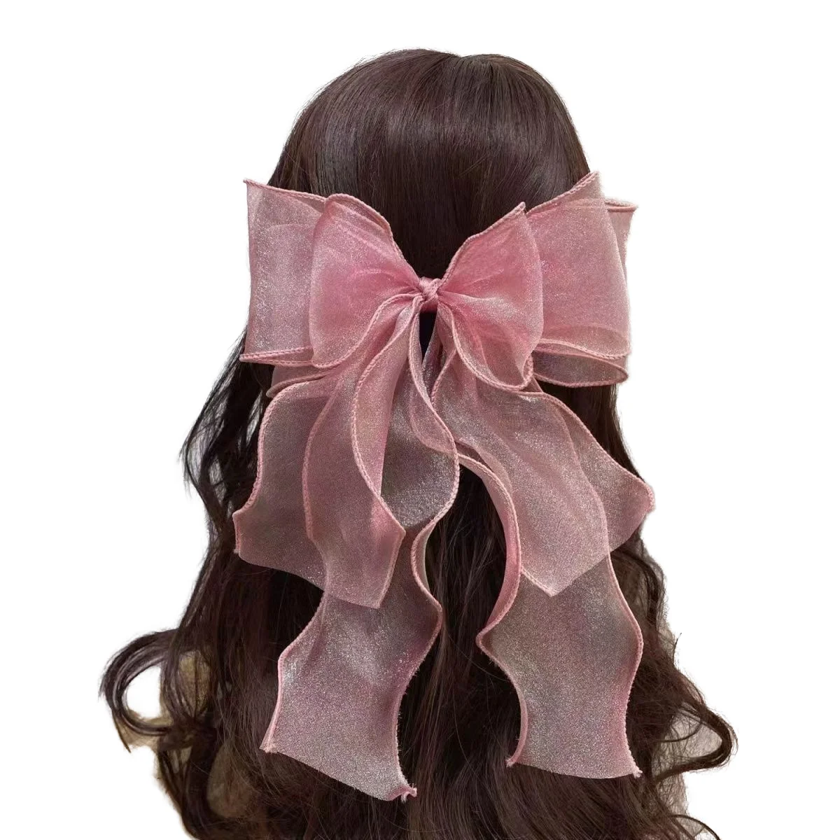 Wholesale Organza Rose Ribbon Bow Hair Clip Sheer Ribbon Flower Pre...