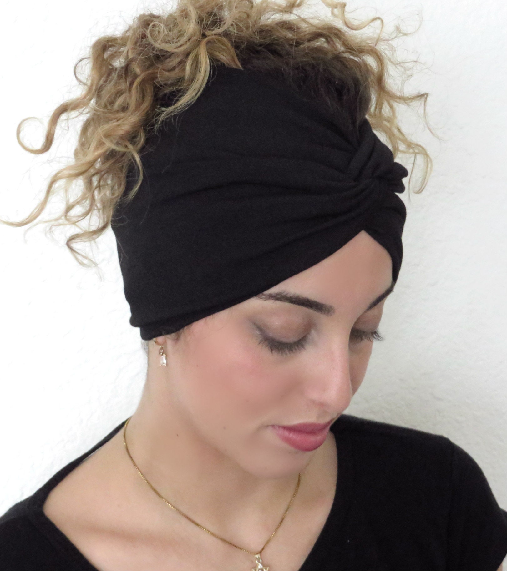 "Wide Black Headband, Wide Yoga Headband, Hair Scarf, Turban Headband, Black Twisted Headband, ...