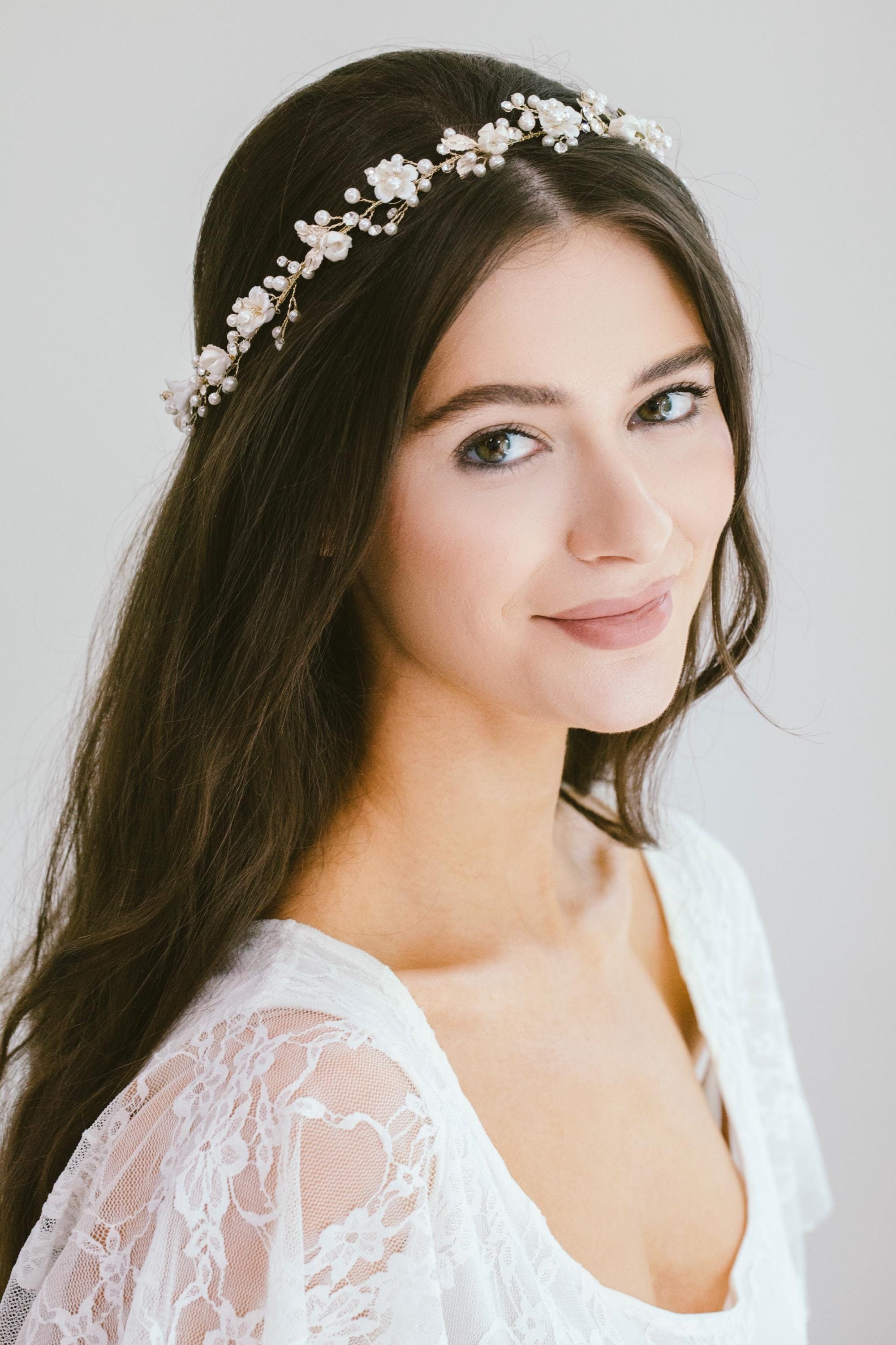 Minimalist Wedding Flower Crown, White Floral Crown, Elegant Bridal...