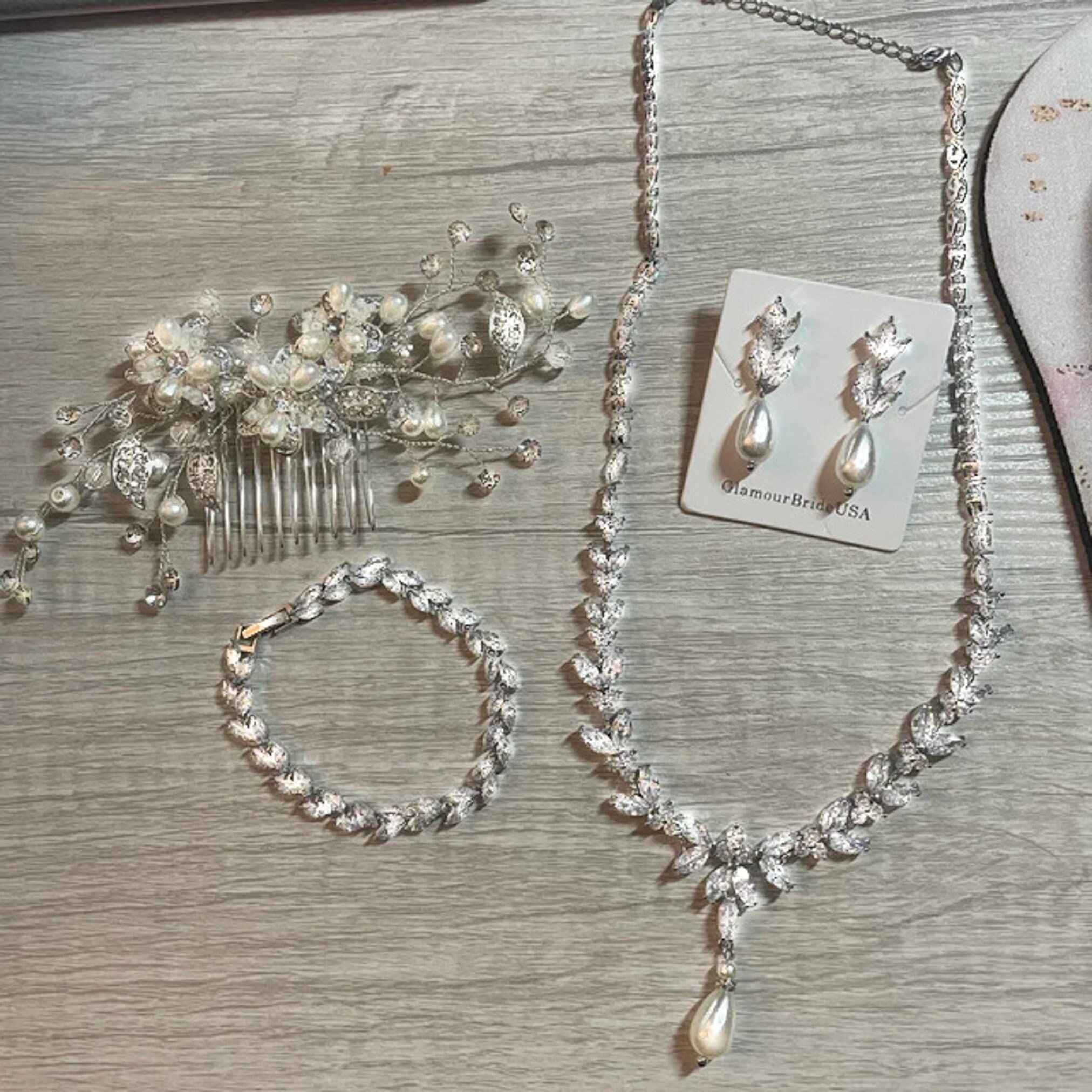Wedding Jewelry Set Pearl Bridal Hair Comb Bridal Jewelry Pearl Hai...