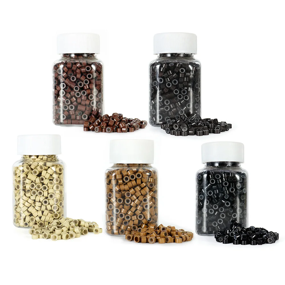 1000pcs Microlink Beads 5mm*3mm*3mm Silicone Lined Hair Extension Beads Micro Links Rings for Hair E...