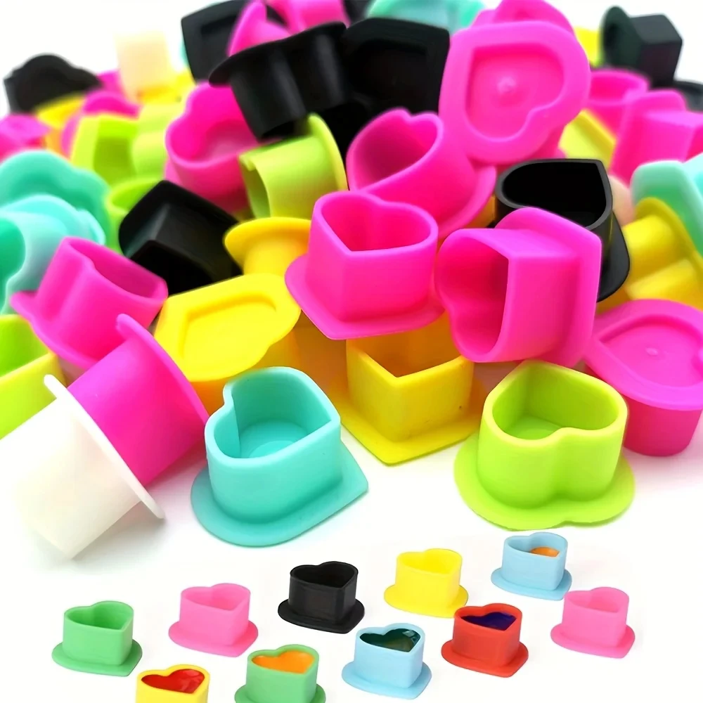 200pcs Tattoo Ink Cup Heart-Shaped Disposable Silicone Tattoo Pigme...