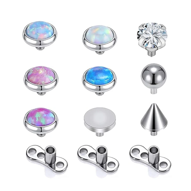 14G Opal Dermal Anchor Tops Titanium Dainty Crystal Microdermals Bo...