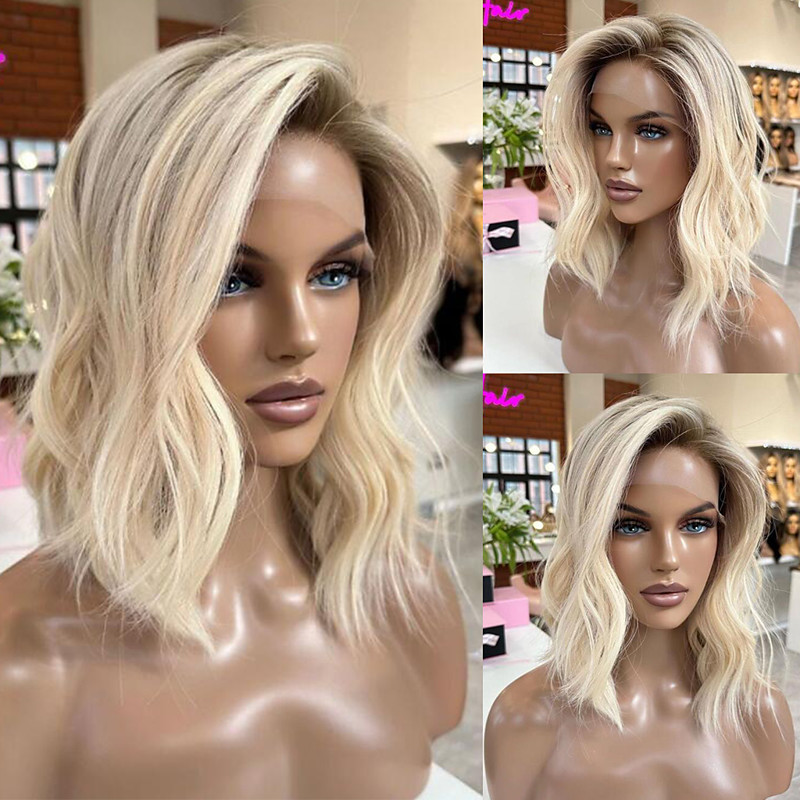 Remy Human Hair 13x4 Lace Front Wig Short Bob Brazilian Hair Wavy B...