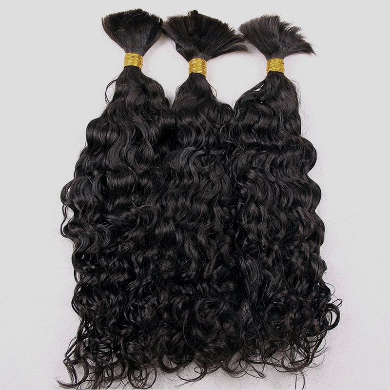 • Water Wave Indian Human Hair Bulk For Braiding Curly Style Bulk Hum...