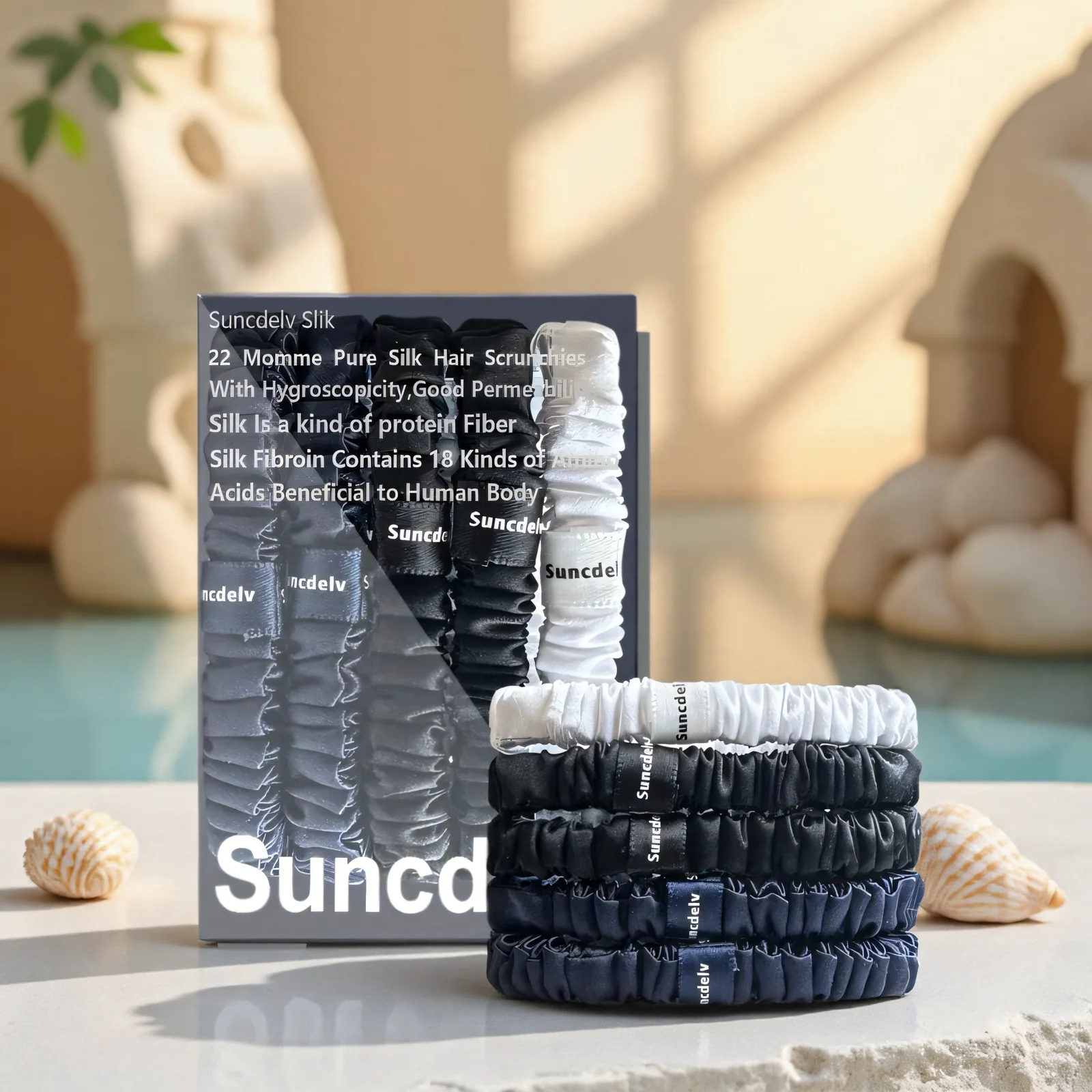 [22 Momme Silk Scrunchie] 5PCS 100% Pure Mulberry Silk Hair Scrunch...