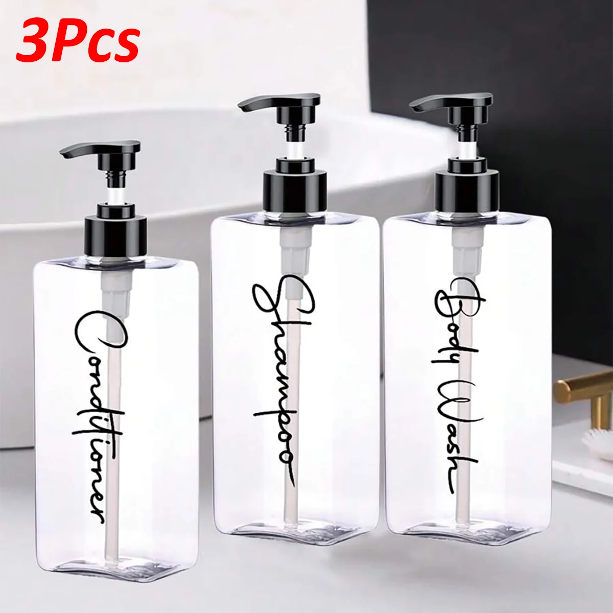 3Pcs Refillable Shower Shampoo Conditioner Bottle Dispenser 500ml Bathroom Lotion Empty Bottle Plast...