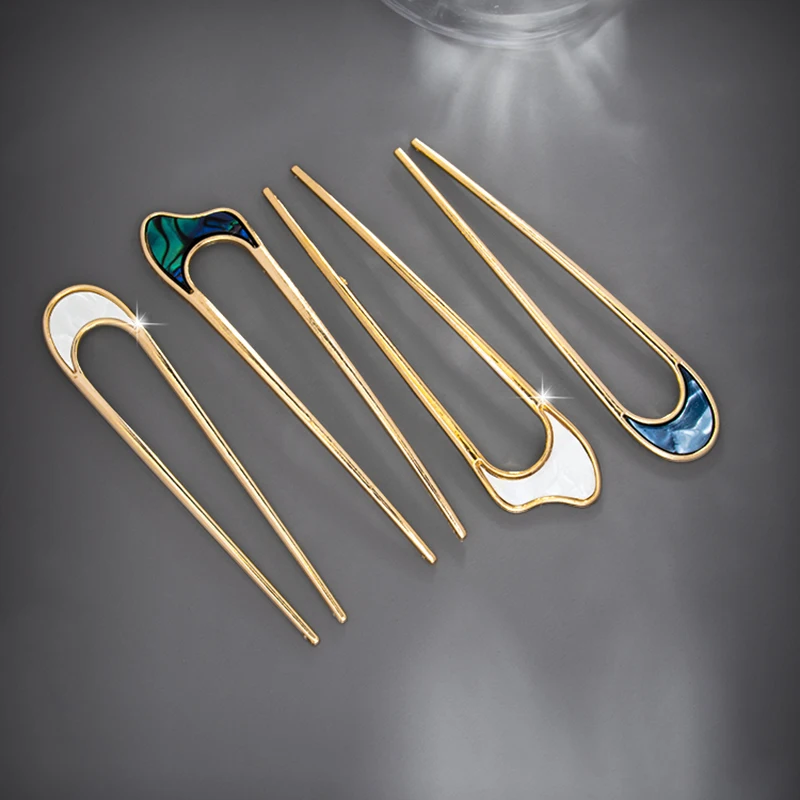Fashion Luxury Silver Gold Color Elegant Shell Enamel Hairpin for Women Metal U Shape Hair Stick Hai...