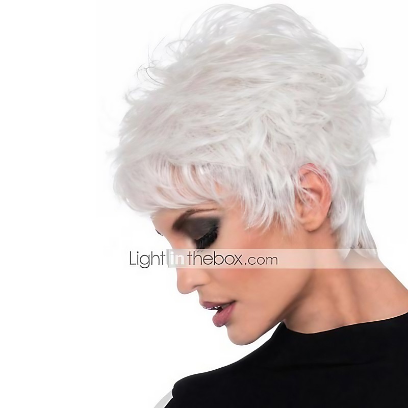 White Wigs for Women Synthetic Wig Loose Curl Asymmetrical Wig Shor...