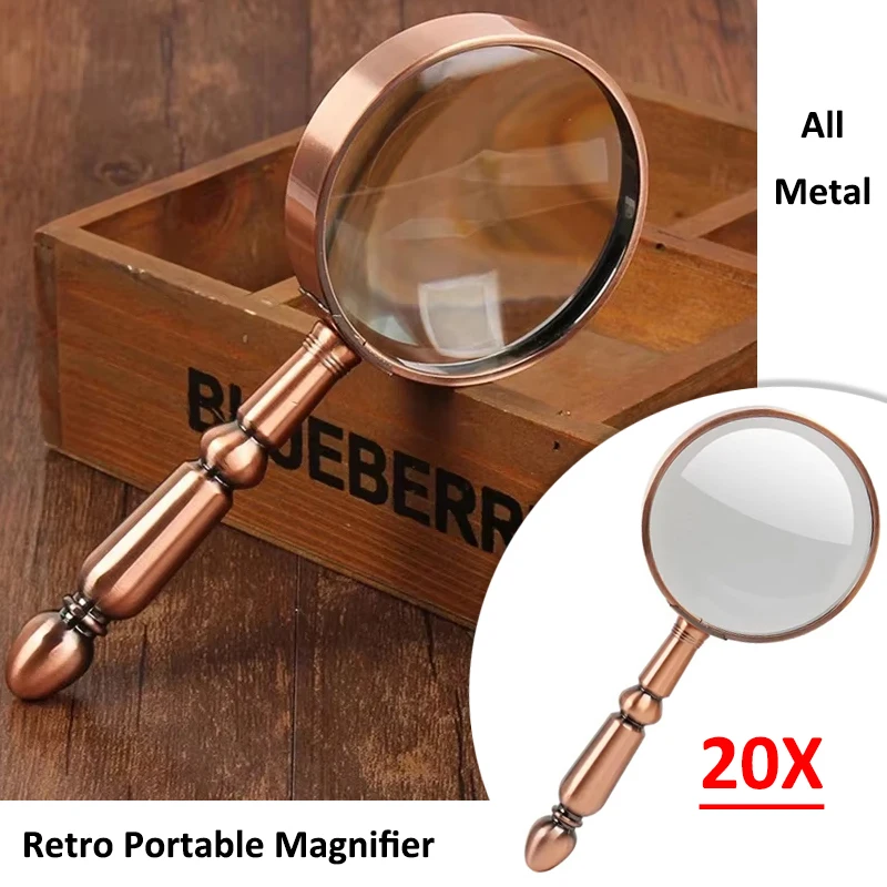 20X Retro All-Metal Magnifier Portable Optical Magnifying Glass Jew...