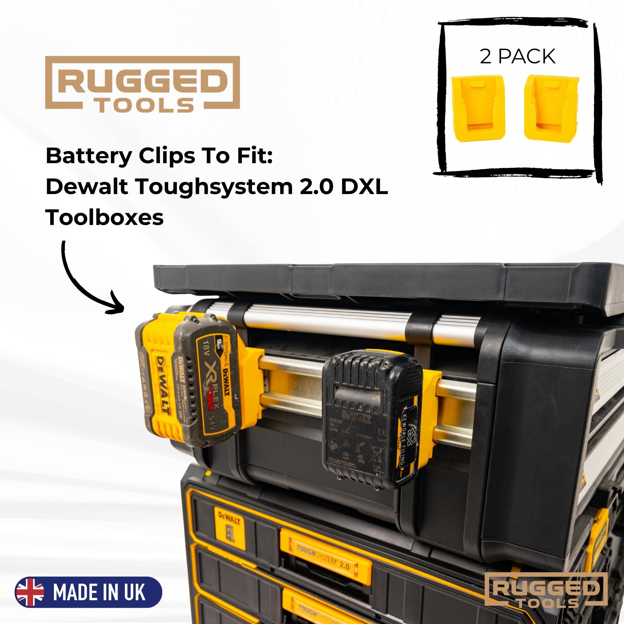 Rugged Tools Battery Clip 2-Pack | Mount Your DeWalt 18V & 54V Batteries to Your DXL Toolbox Sid...