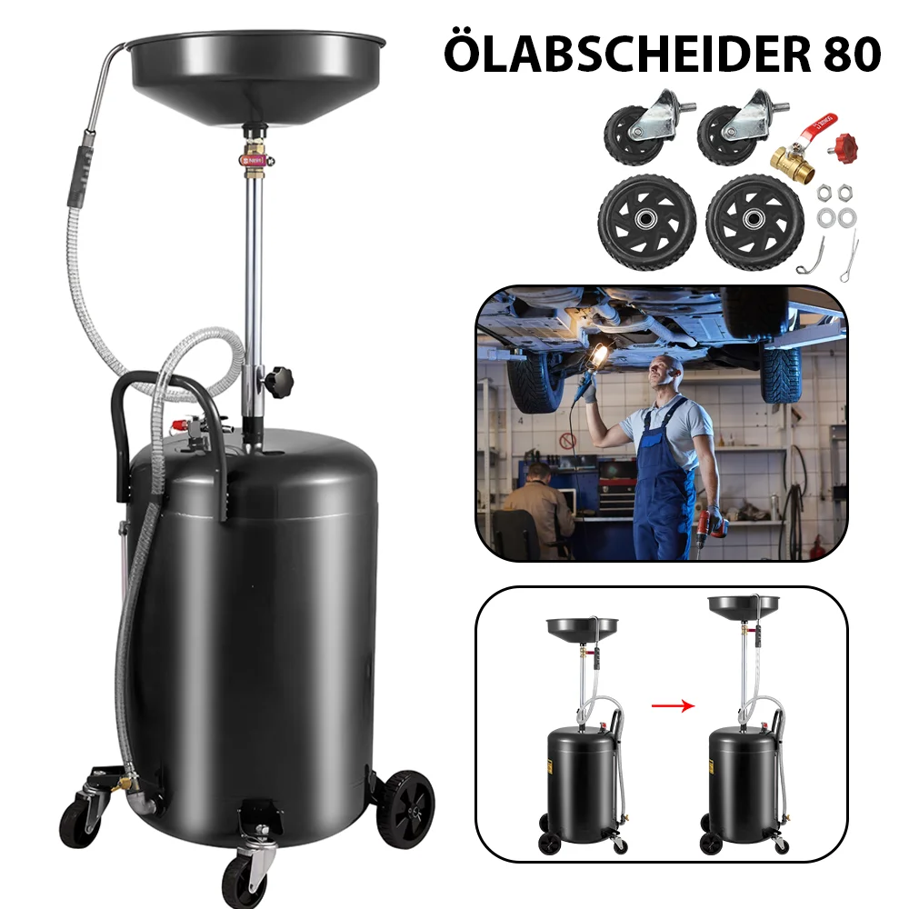 80L Waste Oil Drain Tank Air Operated Drainer with oil level pipe for Fluid Fuel Transfer Drainage O...