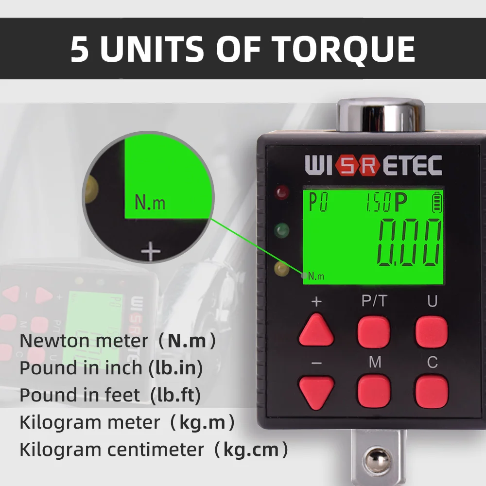 WISRETEC Electronic Digital Display Torque Wrench Torque Meter Torque Connector Torque 0.1-2000N.m T...