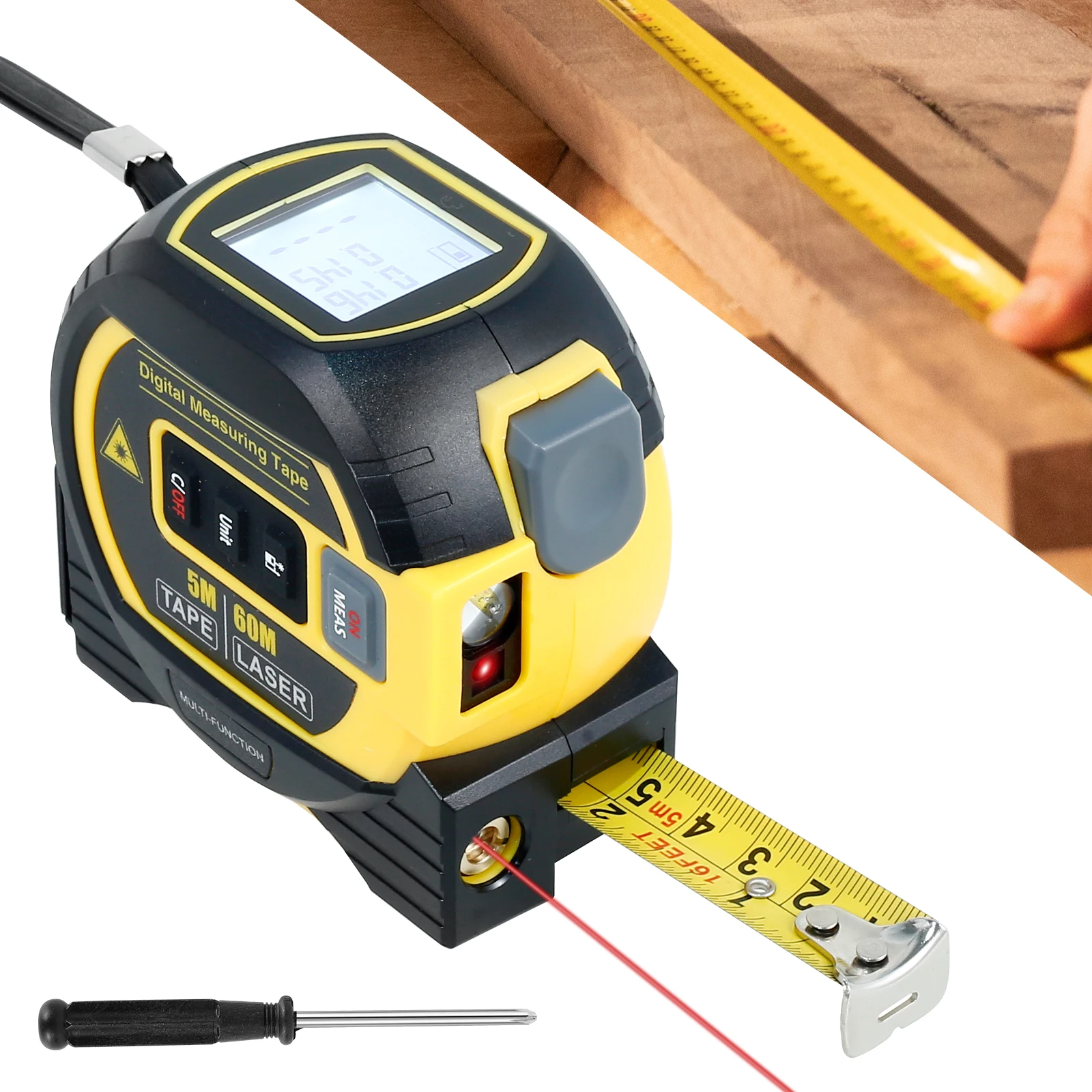 Laser Tape Measure Meter Building Measurement Device 3in1 Laser Rangefinder 5M Tape 60M Laser Measur...