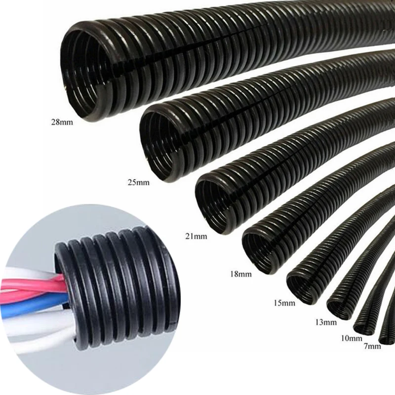 3Meters Black Wire Conduit Convoluted Tubing Wire Threading Plastic Sleeve Flexible Split Loom Wire ...