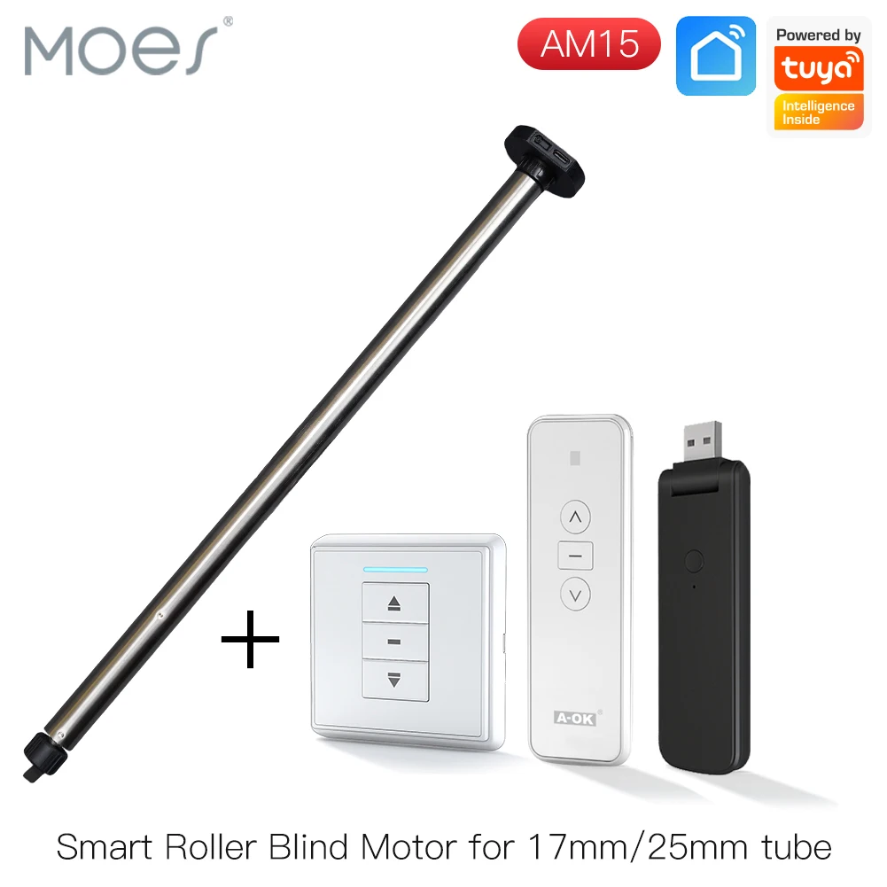 Moes Automatic AM15 Tubular Roller Blind Motor for 17/25mm Tube Motorized Electric Blind Shade RF433...