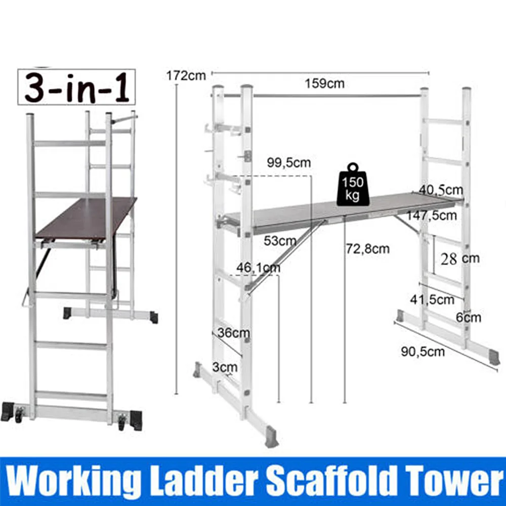 Aluminium Working Ladder Step Platform Multi Purpose Scaffold Tower 3 IN 1 Folding Working Scaffold ...
