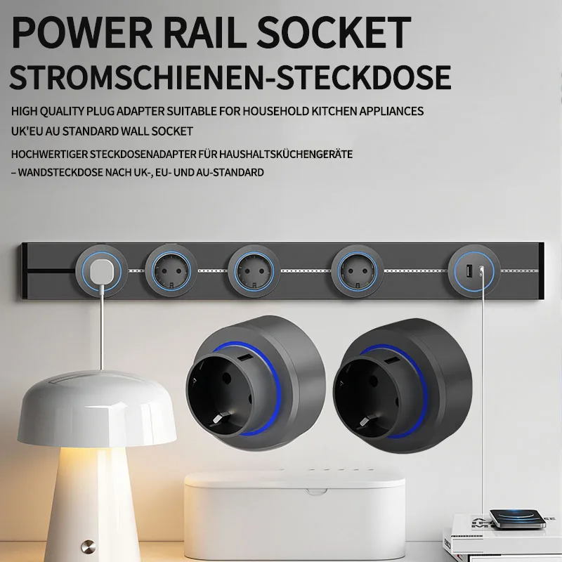 Wall power rail socket EU, kitchen aluminum expansion socket 40cm 5...