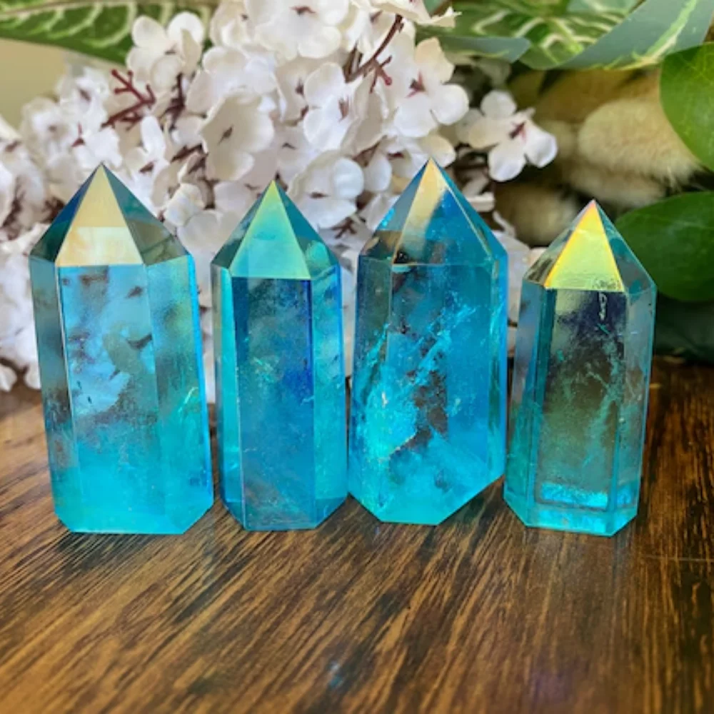 1pc Aqua Aura Quartz Tower - Blue Aura Quartz Tower -High Vibe Aura...