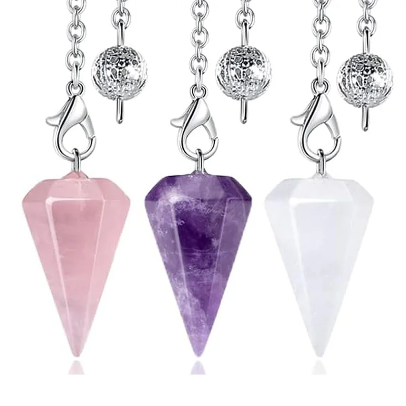 Small Natural Stone Pendant Pendulum for Beginner Dowsing Divination Real Pink Quartz Amethyts Clear...
