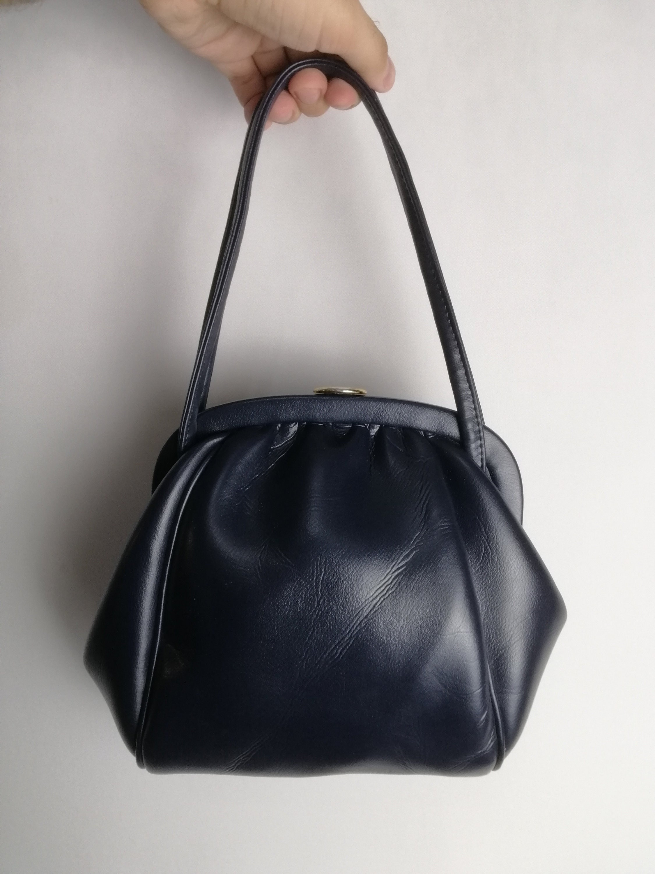 60s Genuine Leather Handbag, Real Leather Top Handle Bag, Classic E...