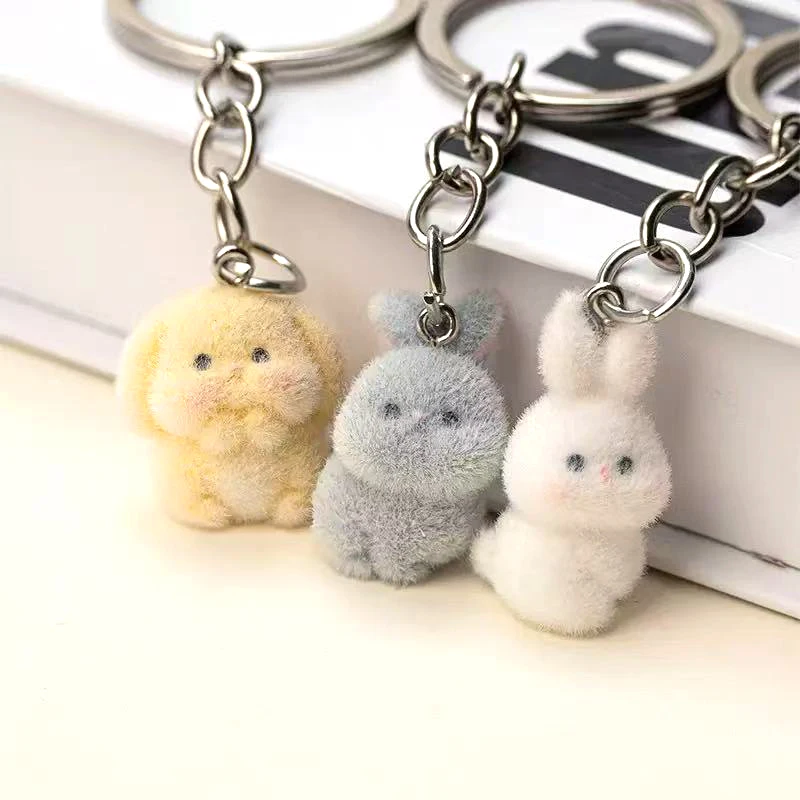 1-3pcs Cute Flocking Little Rabbit Keychains Small Animal Keychains For Women Child Men's Bag's Key ...