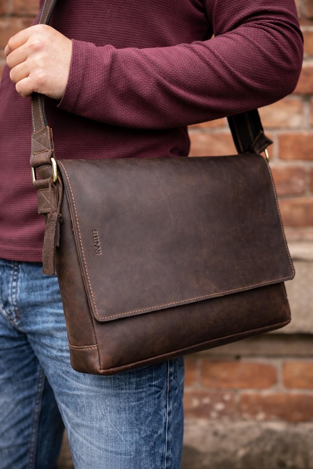 Full Grain leather bag Men, Leather Crossbody bag, Brown Leather Sa...