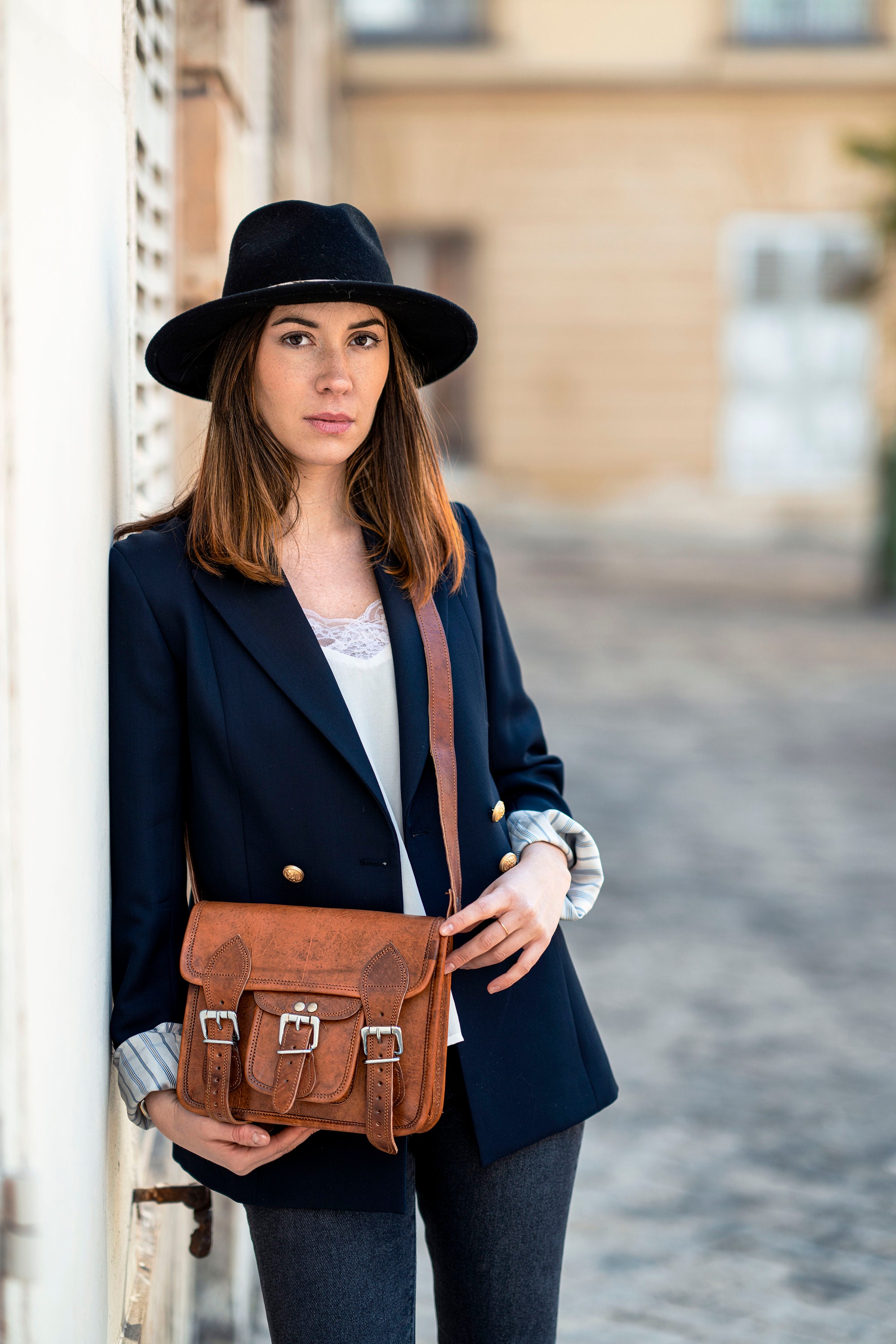 Personalized leather satchel bag Made from 100% crazy horse leather