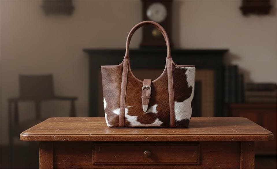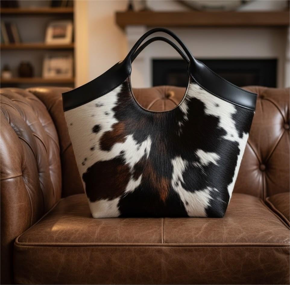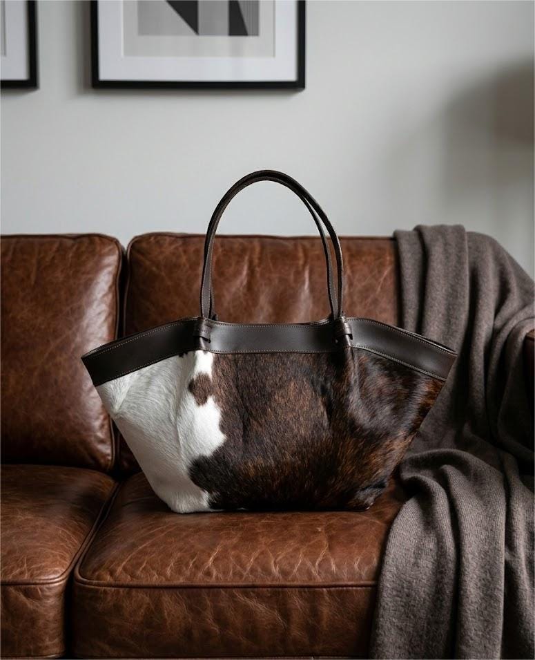 Real Cowhide Leather Tote Bag | Handmade Shoulder Bag | Cowhide Hai...