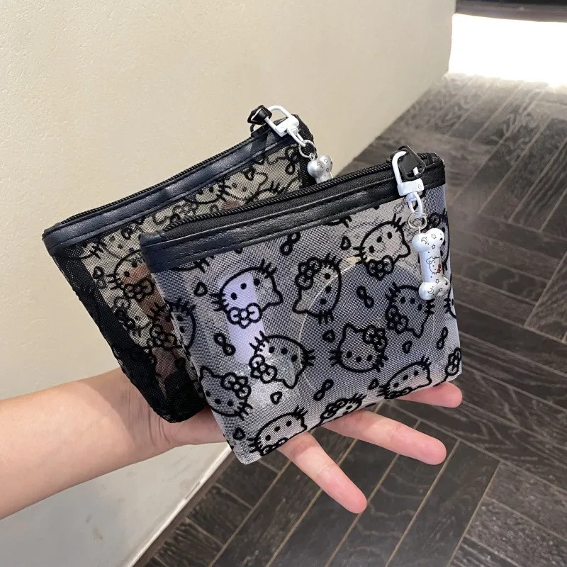 Kawaii Lace Hello Kitty Cosmetic Bag Cute Vintage Coin Purse Black Mesh Storage Bag Portable Makeup ...