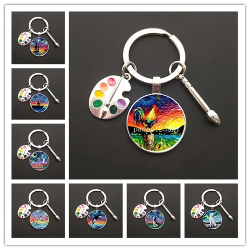 2021HOT retro oil painting character sailing wolf chicken men's and women's key ring charm car bag p...
