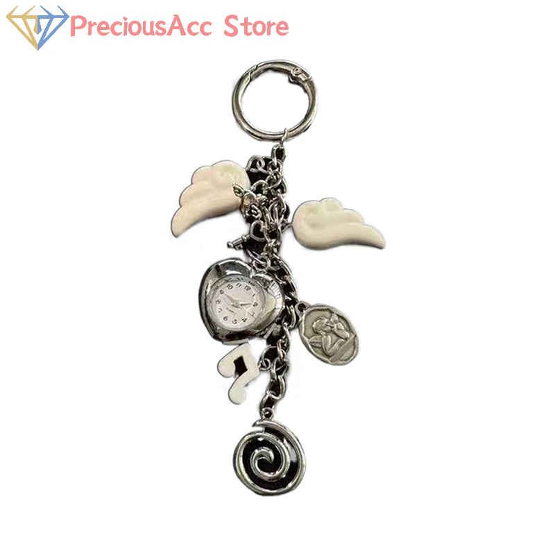 New Angel Wings Keyring Heart Pocket Watch Bag Charm Pendant Keychain For Women Girls Bag Decoration...
