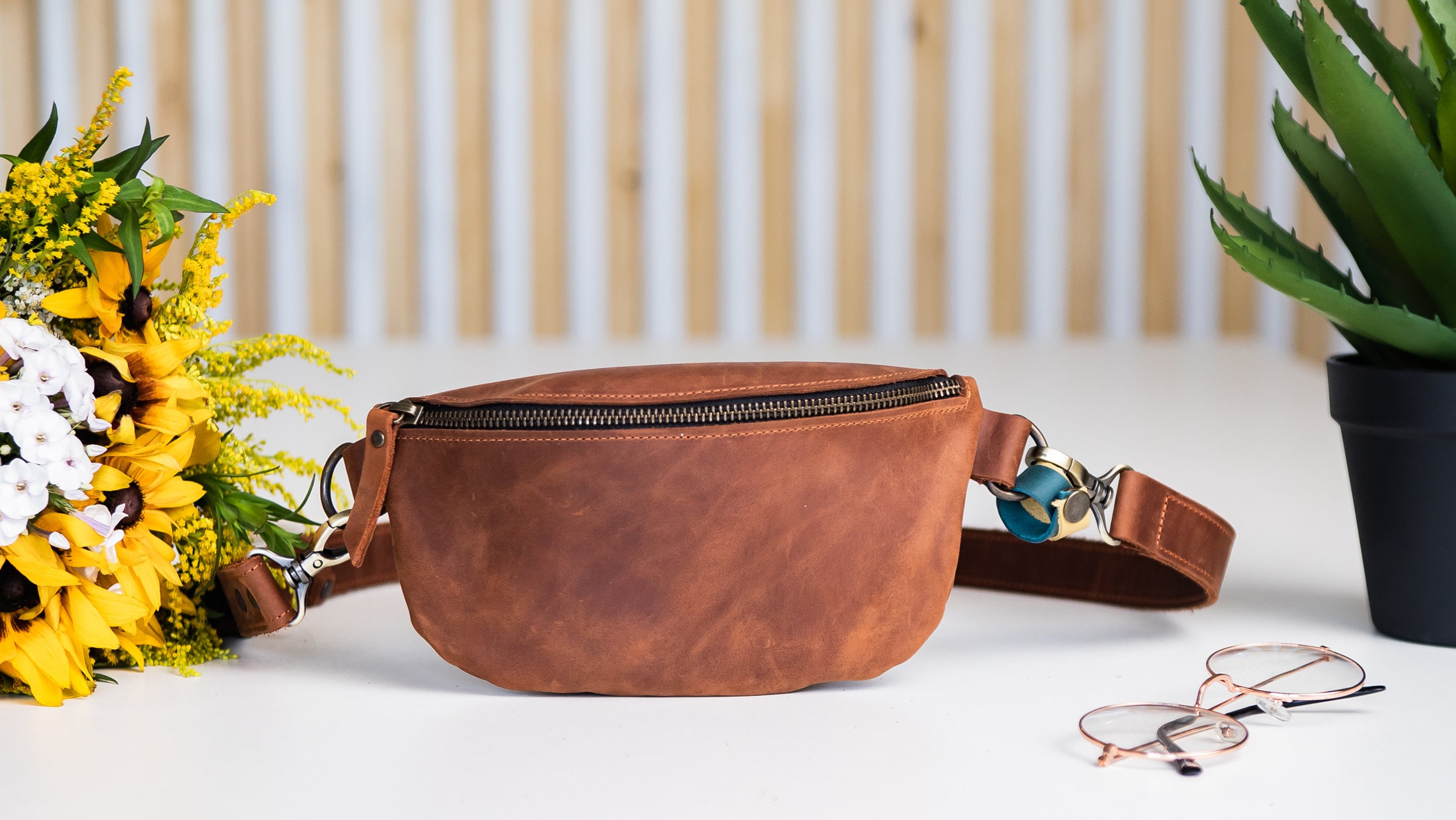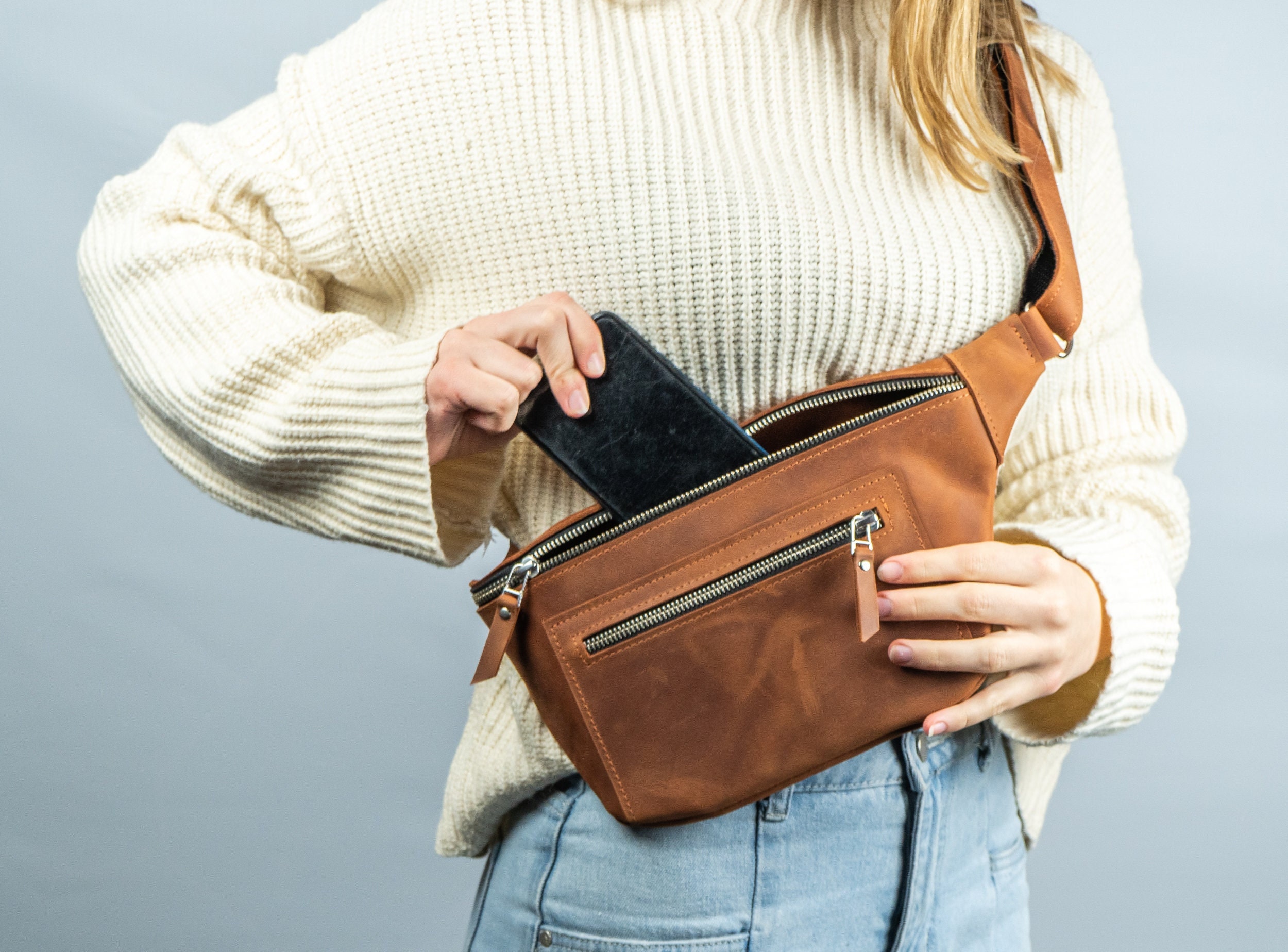 Large leather fanny pack, Bum bag, Close to body bag, Small leather...