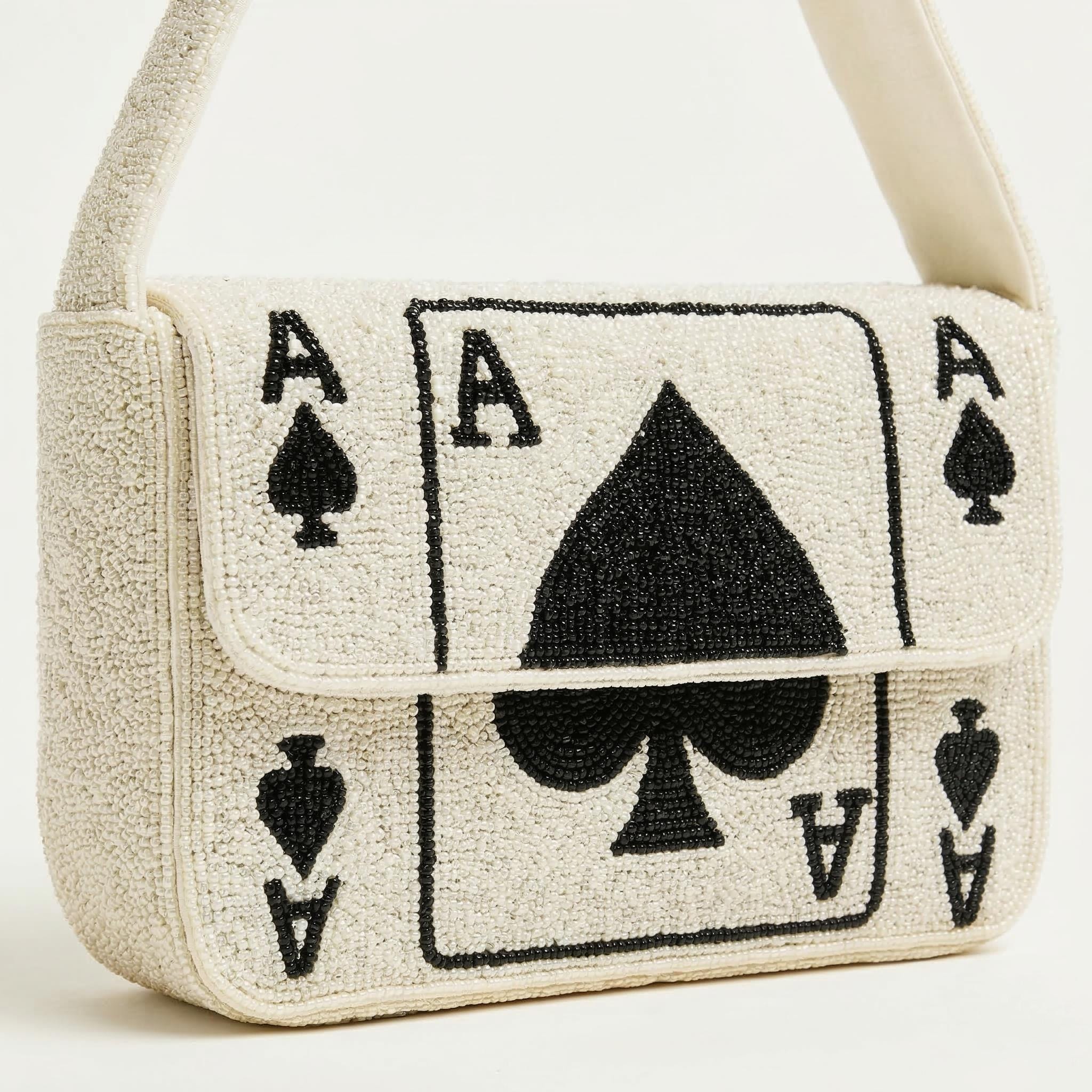 Ace Of Spades Purse, Beaded Spades Bag, White Spades Purse, Black S...