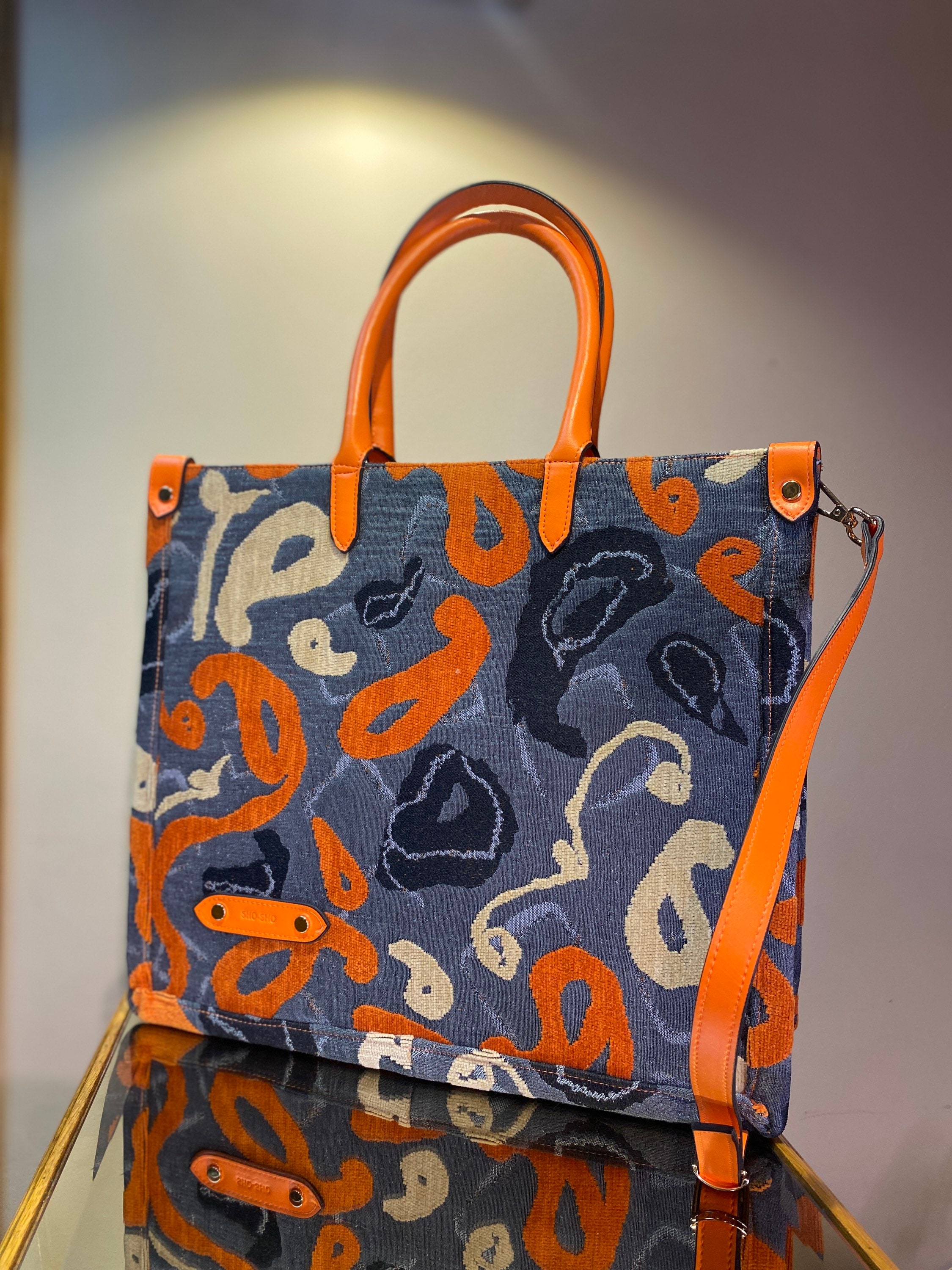 Large orange tote bag, casual shopping bag, handmade bag large tote, big totebag with crossbody hand...