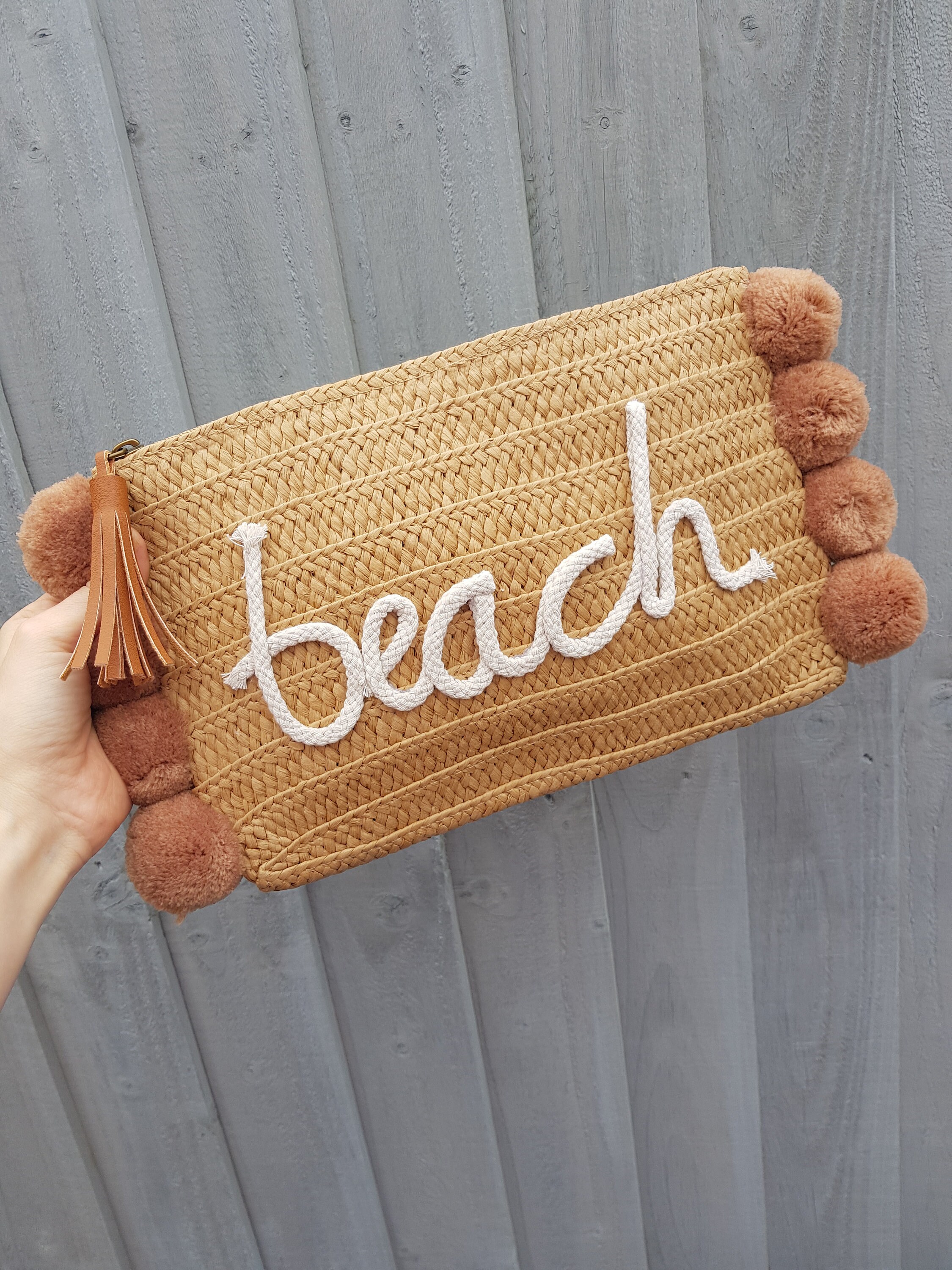 Pom pom straw clutch bag/Beach bag/Clutch bag/Beach clutch/Large cl...