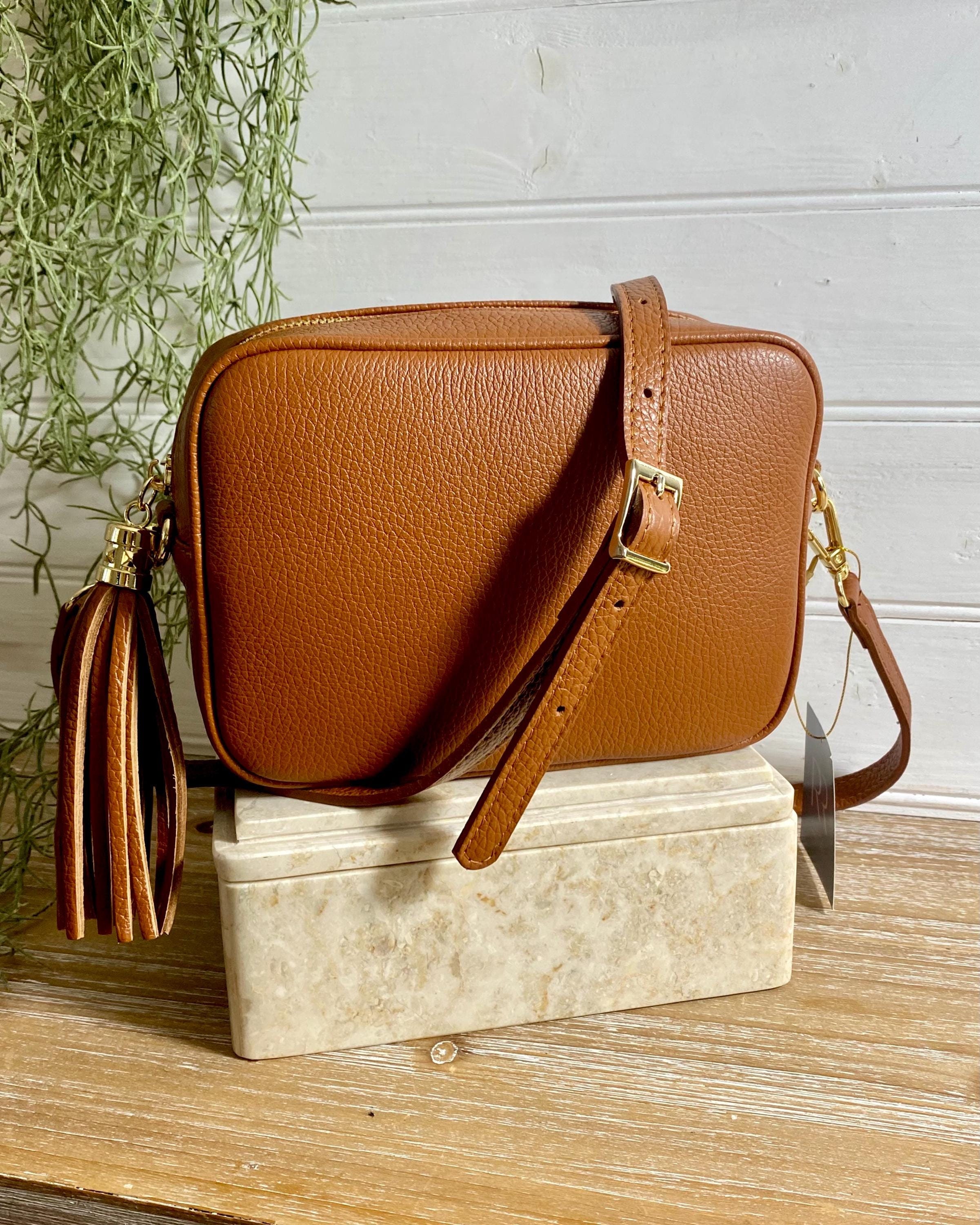 Tan Leather Crossbody Bag. This beautiful quality real Italian leather bag has a smarter, more eleva...