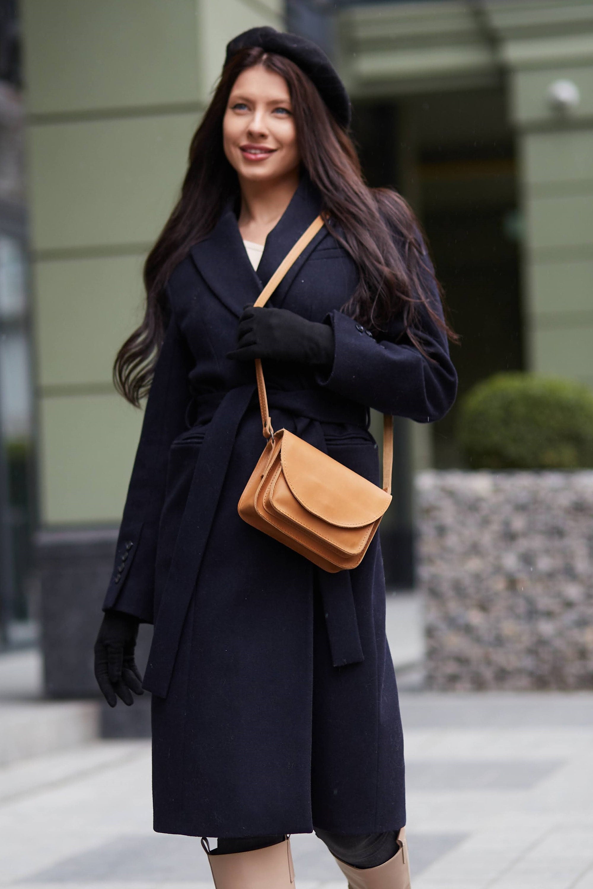 Tan Crossbody Bag, Dark Tan Leather Cross Body Bag, Brown Leather T...
