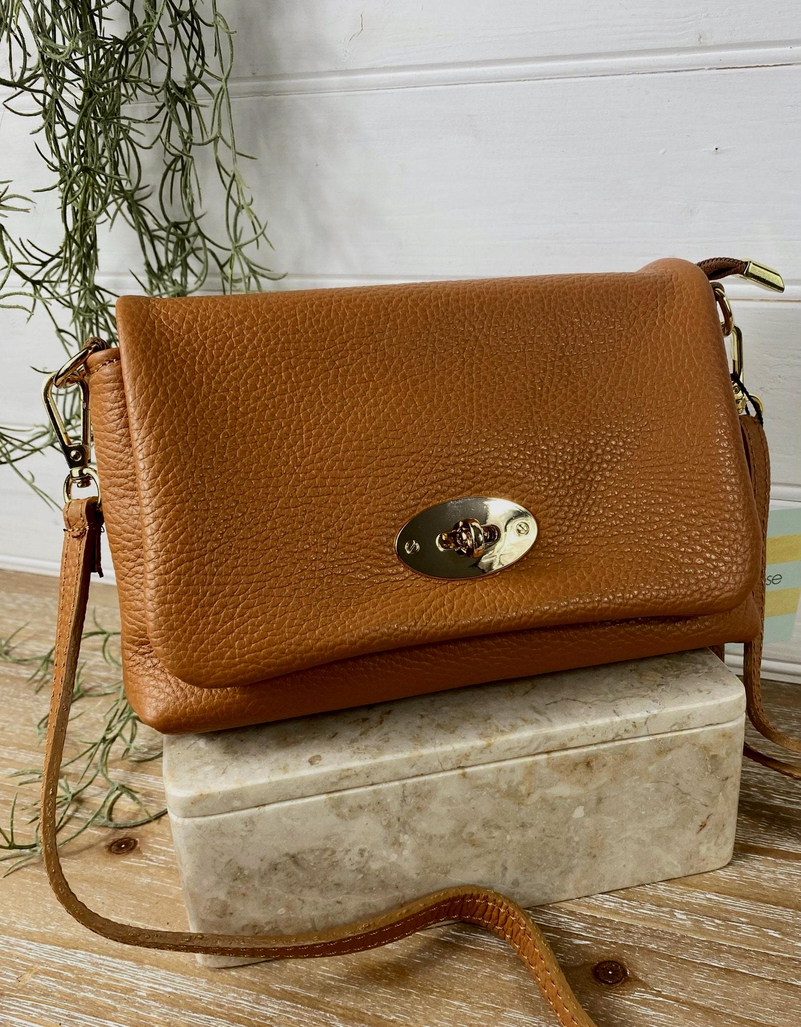 Tan Twist lock Leather Bag, Tan Leather Crossbody, Classic Tan Hand...