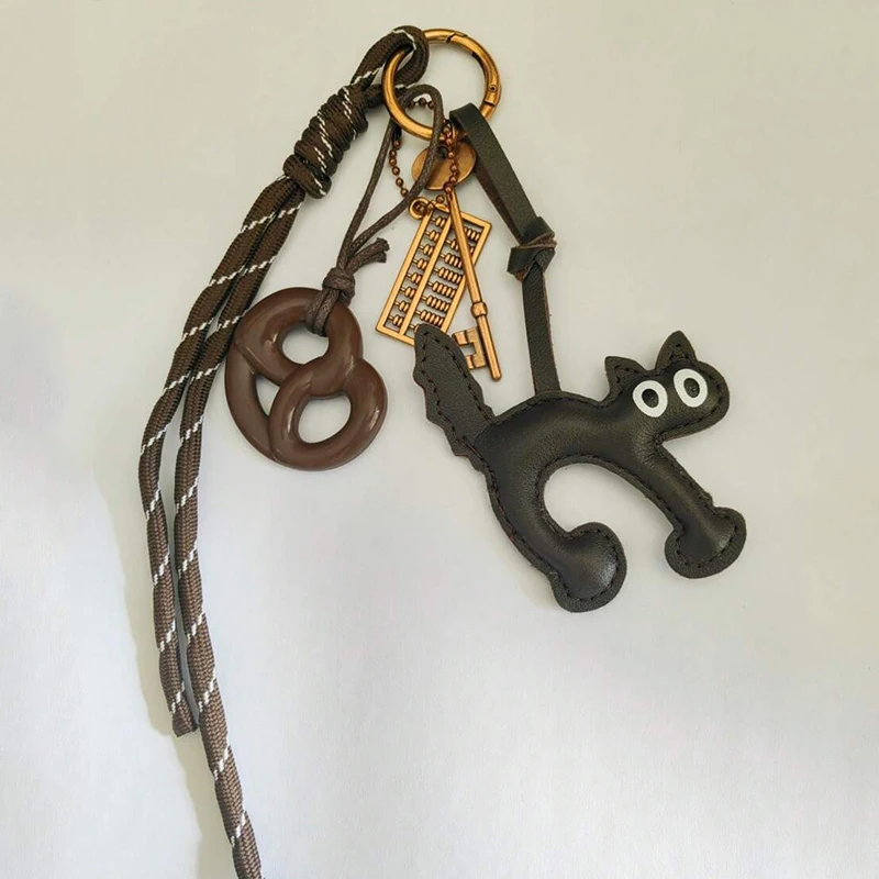 Classic Cute Leather Cat Shape Keychain Pendant Lovely Car Key Ring Bag Charm Phone Pendant Trinket ...