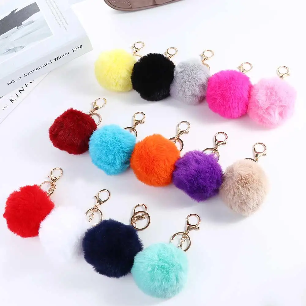 Accessories Fluffy Pompom Handbag Charms Key Ring Car Keyring Car Keyring Fur Ball Keychain Pom Fluf...