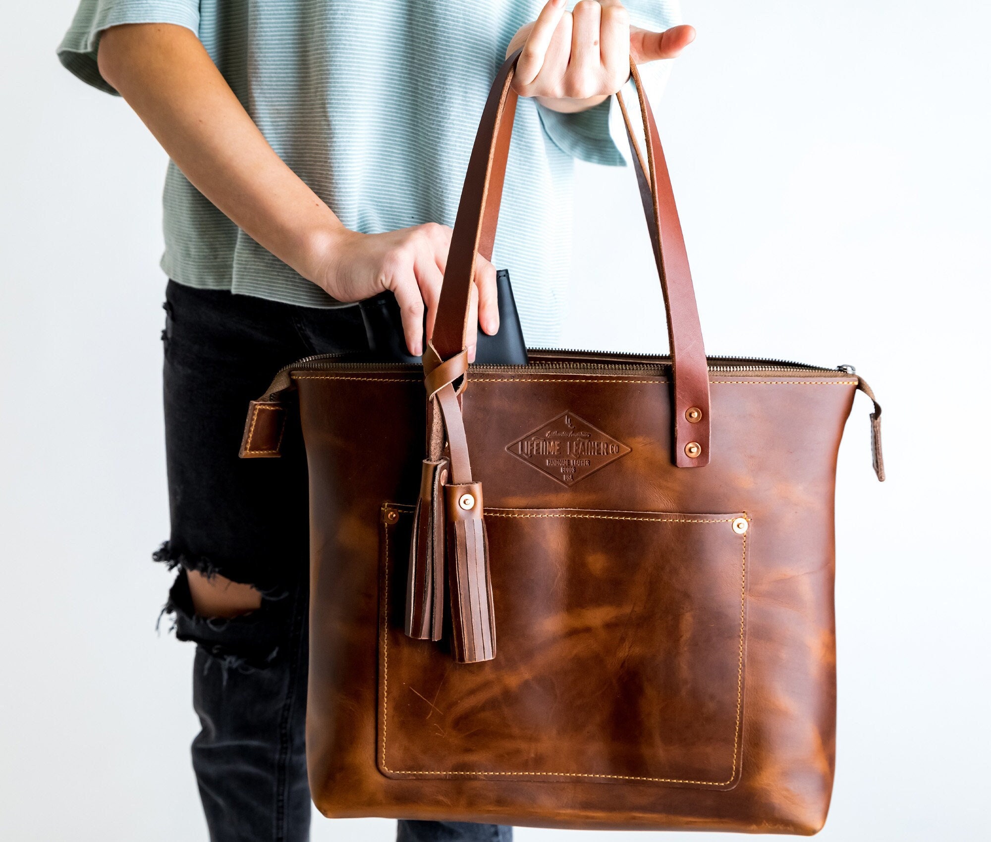 LIFETIME Brown Leather Tote - Work Tote Bag, Genuine Leather Tote B...