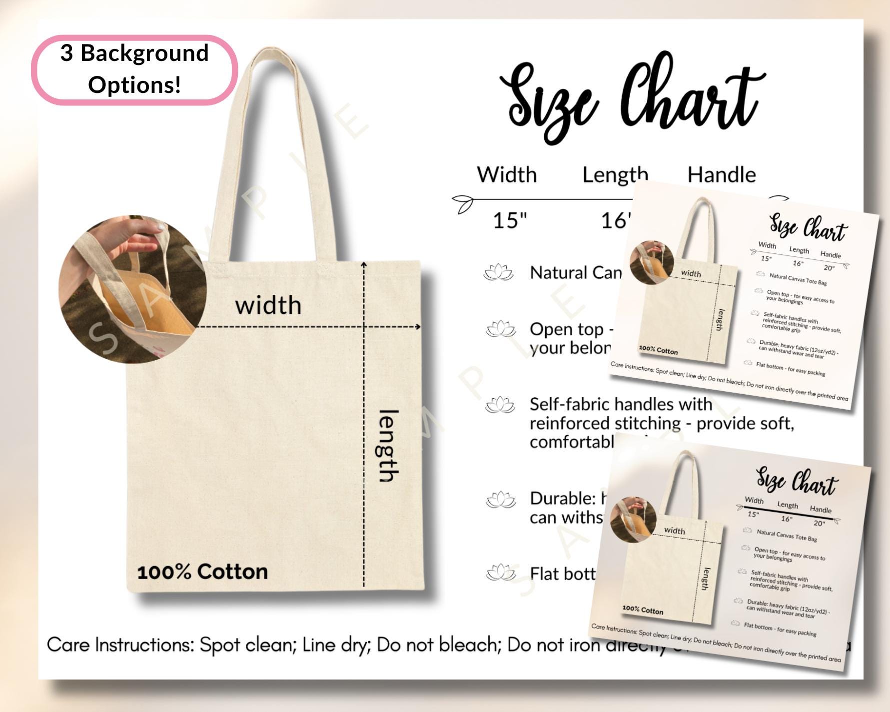 "The Liberty Tote Bag: Size Chart & Features Mockup - Instant Digital Download Highlights &...